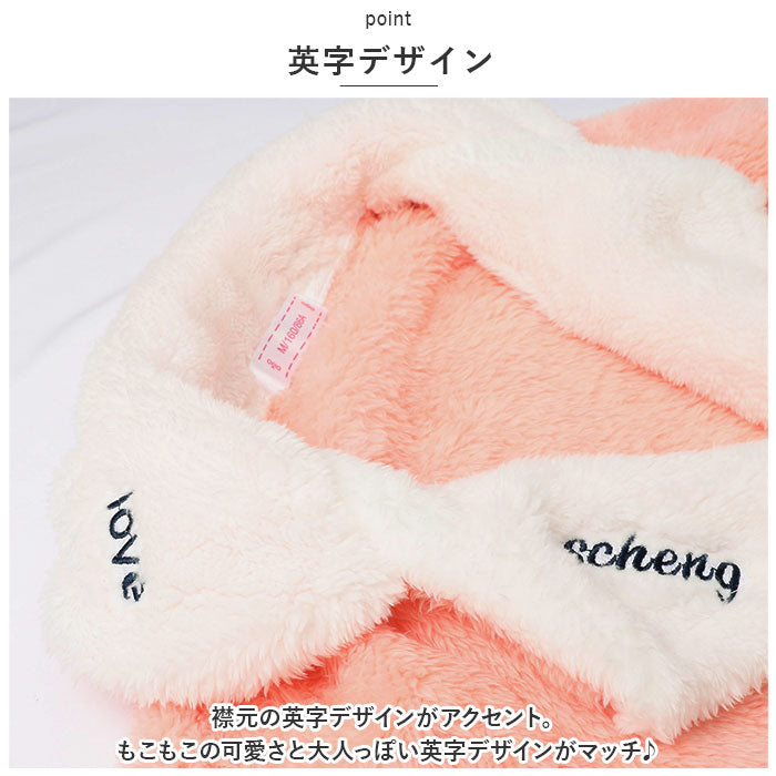 ・襟元の英字デザインがアクセント。もこもこの可愛さと大人っぽい英字デザインがマッチ♪