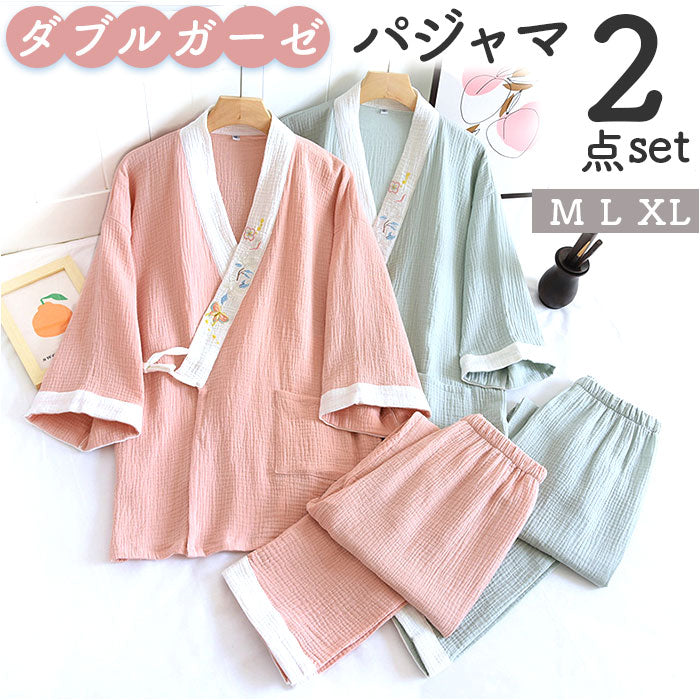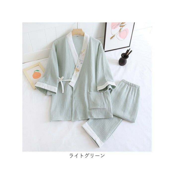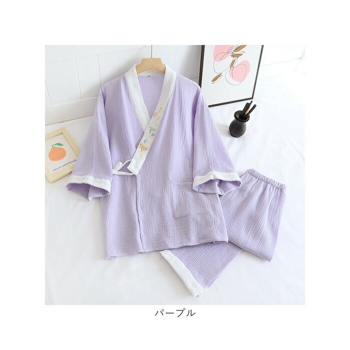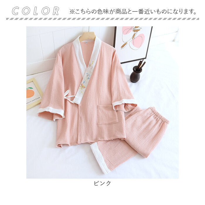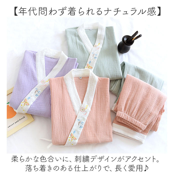 パジャマ ナイトウェア 和風 2重ガーゼ 春 夏 秋 冬 ゆったり