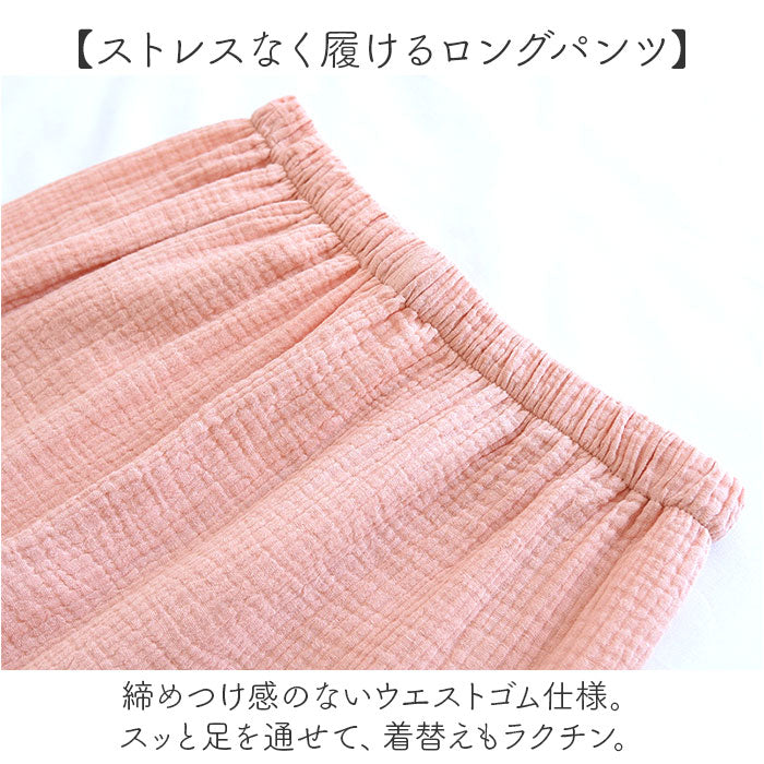 パジャマ レディース ガーゼ 夏用 通販 ナイトウェア ルームウェア 部屋着 七分袖 7分袖 綿 コットン 甚平 Vネック 入院 長ズボン ゆったり 前開き かわいい おしゃれ 春 夏 秋 寝巻き