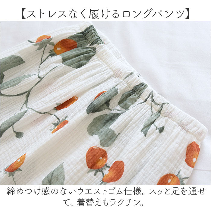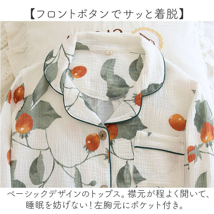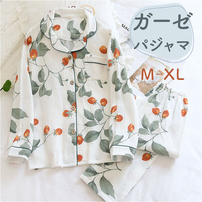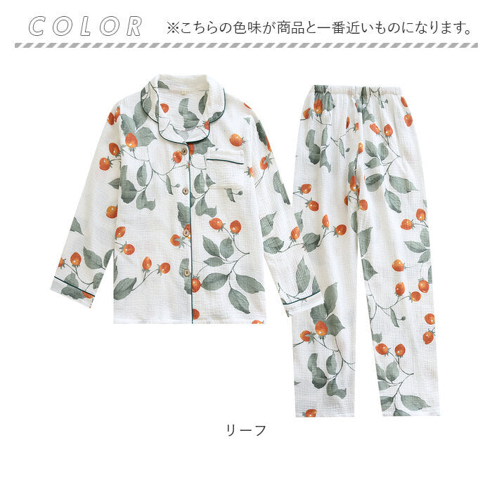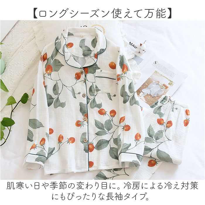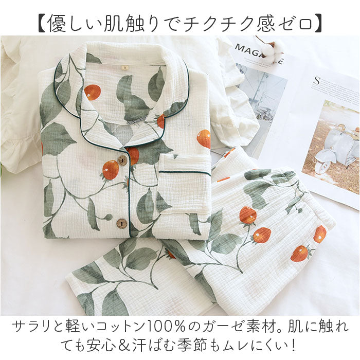 パジャマ レディース 上下セット 通販 長袖 長ズボン ルームウェア 前開き 綿 コットン セットアップ 部屋着 おしゃれ 薄手 ガーゼ ロングパンツ 夏用 秋用 春 夏 秋 オシャレ かわいい