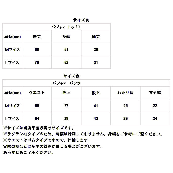 ※トップスはラグラン袖タイプのため、肩幅は計測しておりません。身幅をご参考にご覧ください。