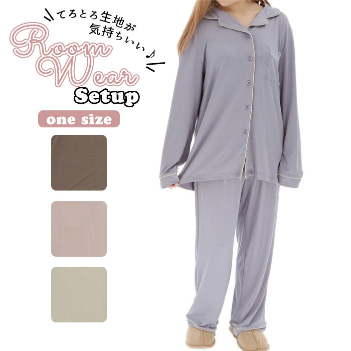 パジャマ レディース 通販 冬 部屋着 ルームウェア 上下 セットアップ 長袖 前開き おしゃれ かわいい 前開き 冬用 てろとろ シンプル 無地 秋冬 ナイトウェア