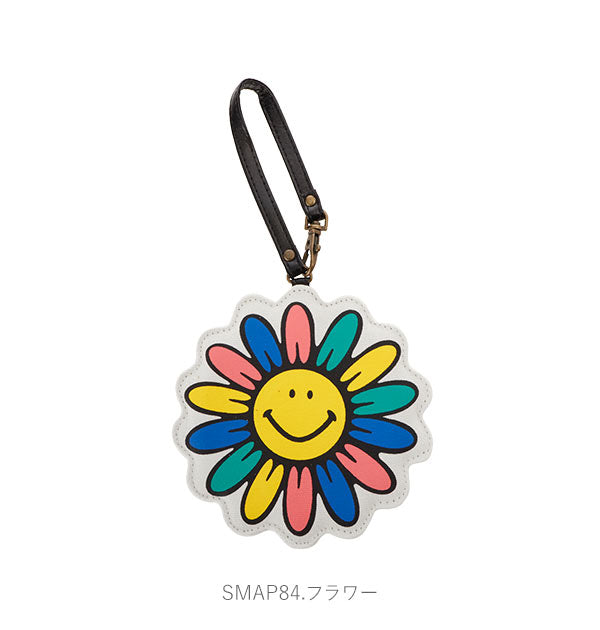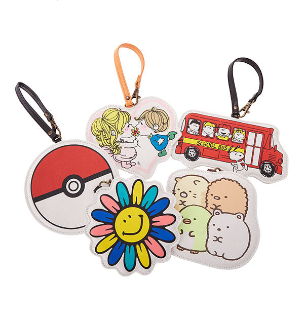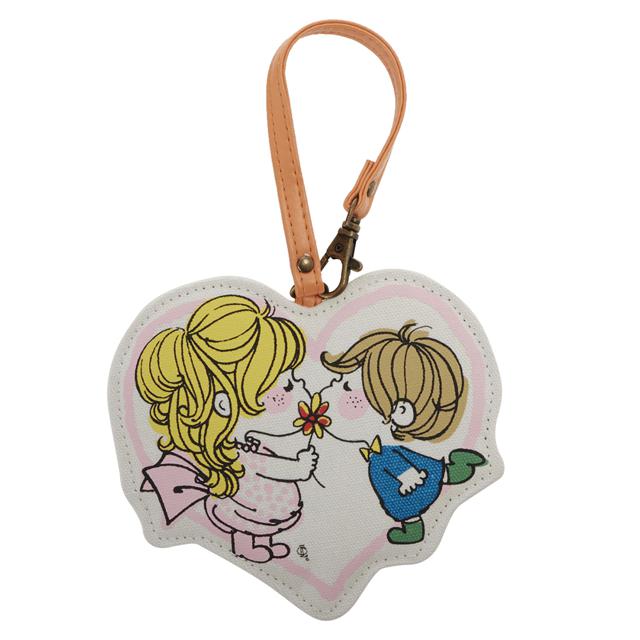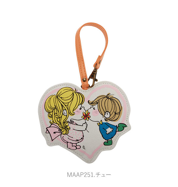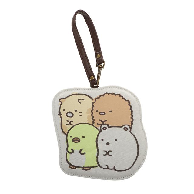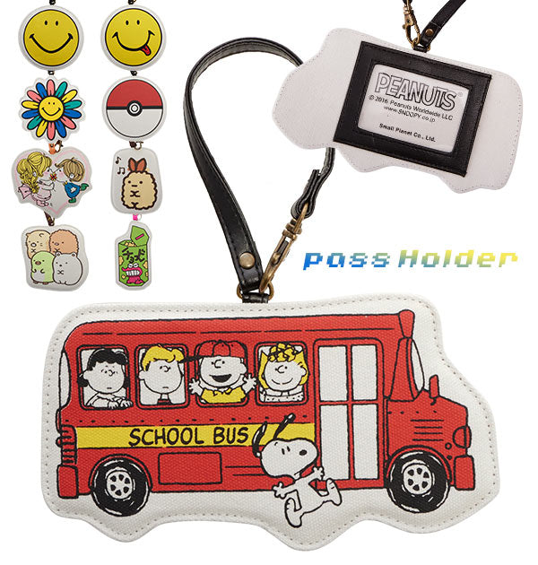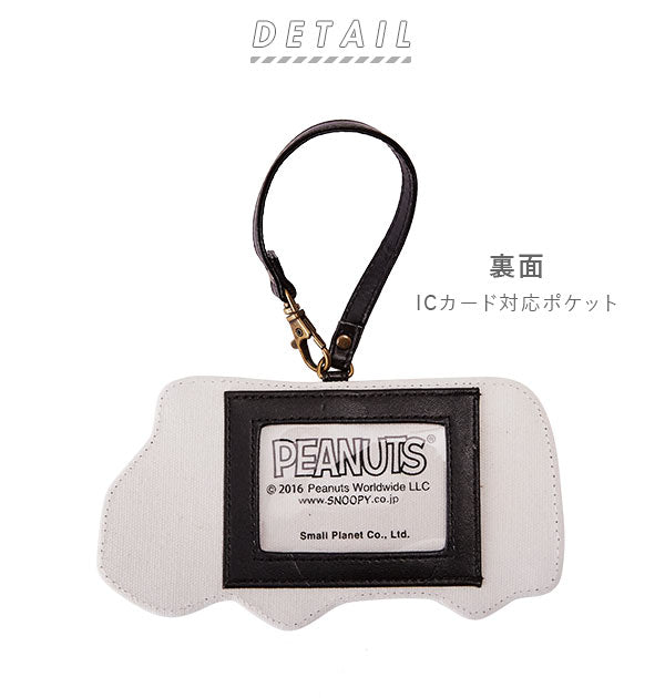 表はキュートなキャラクター柄。裏面にはICカードなどを入れられる窓付きポケットが付いています。バッグなどに取り付け可能なストラップ付。