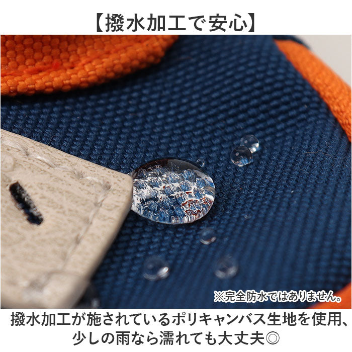・撥水加工が施されているポリキャンバス生地を使用、少しの雨なら濡れても大丈夫◎※完全防水ではありません。