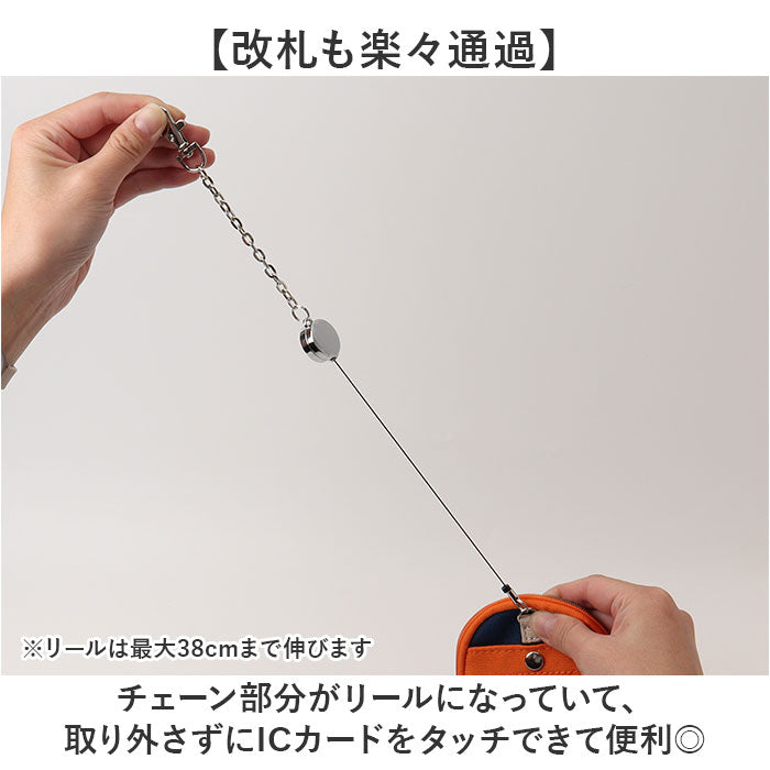 ・チェーン部分がリールになっていて、取り外さずにICカードをタッチできて便利◎※リールは最大38cmまで伸びます
