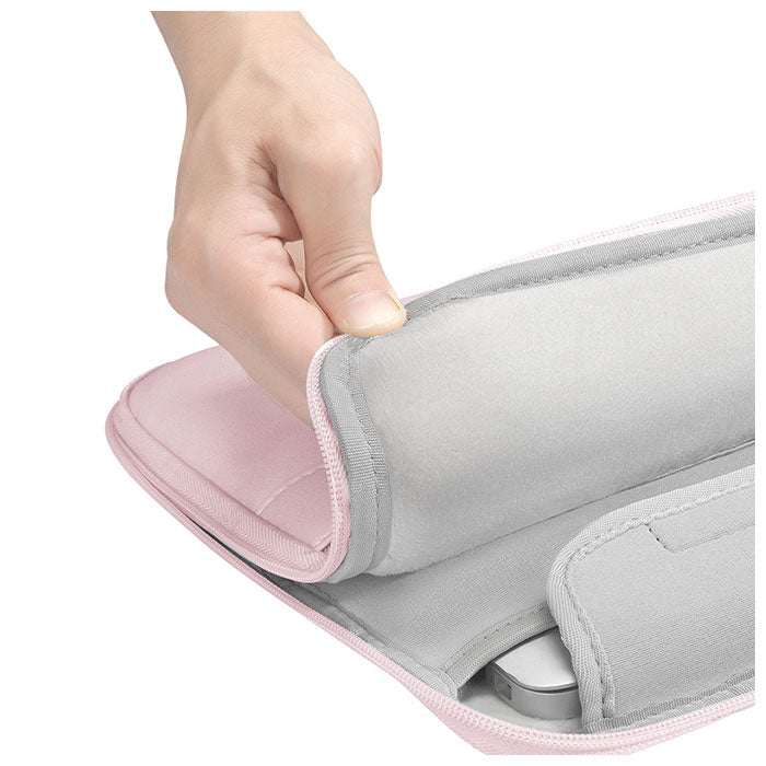 ・ケース単体で持ち歩きしやすい取っ手付き。使わない時は、ポケットの中に持ち手をしまっておけて便利。