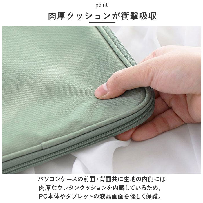 ・パソコンケースの前面・背面共に生地の内側には肉厚なウレタンクッションを内蔵しているため、PC本体やタブレットの液晶画面を優しく保護。