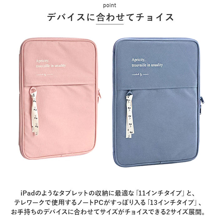 ・iPadのようなタブレットの収納に最適な「11インチタイプ」と、テレワークで使用するノートPCがすっぽり入る「13インチタイプ」、お手持ちのデバイスに合わせてサイズがチョイスできる2サイズ展開。