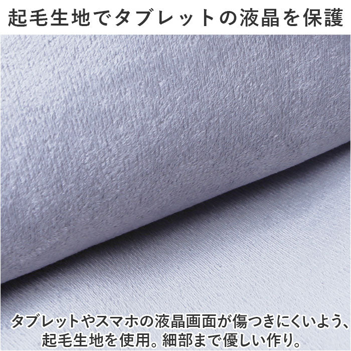 ・タブレットやスマホの液晶画面が傷つきにくいよう、起毛生地を使用。細部まで優しい作り。