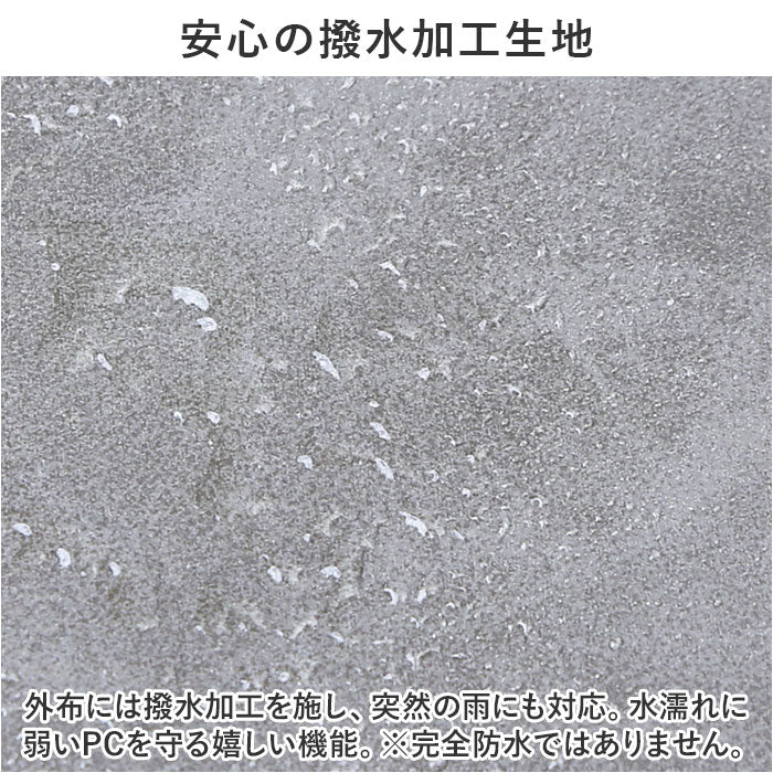 ・外布には撥水加工を施し、突然の雨にも対応。水濡れに弱いPCを守る嬉しい機能。