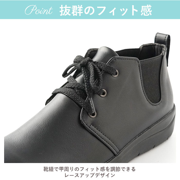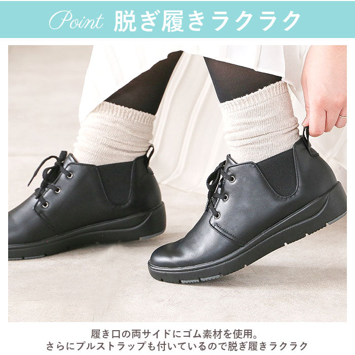・履き口の両サイドに、伸縮性のある幅広ゴム素材を織り込んだサイドゴア仕様。かかとにはプルタブ付きで、脱ぎ履きラクラク。