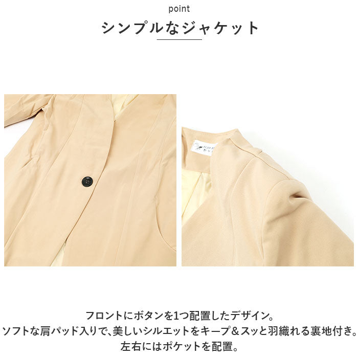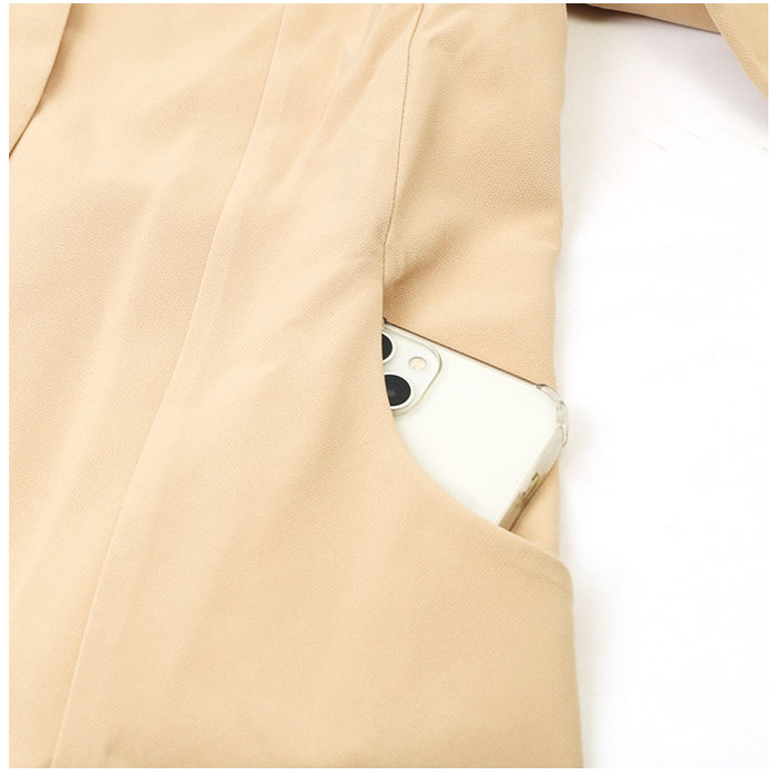 ・フロントにボタンを1つ配置したデザイン。ソフトな肩パッド入りで、美しいシルエットをキープ&スッと羽織れる裏地付き。左右にはポケットを配置。
