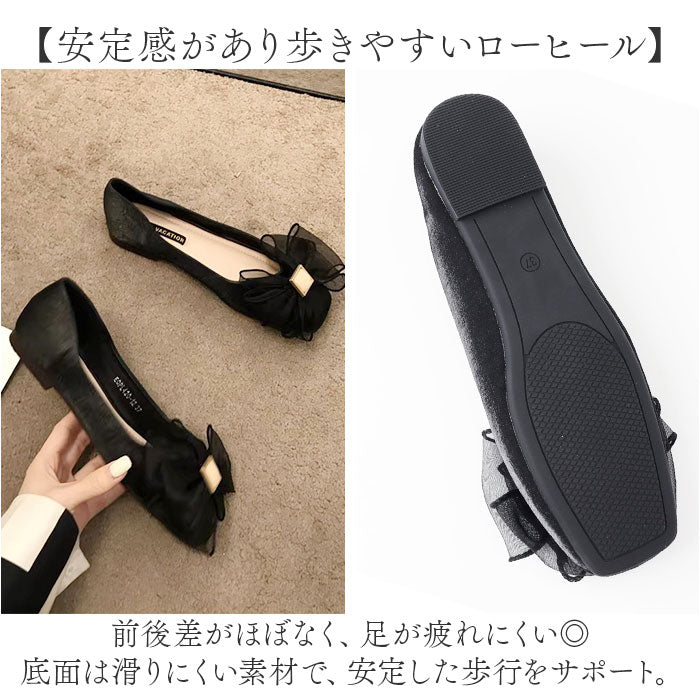 パンプス ぺたんこ かわいい 通販 フラットシューズ ぺたんこ靴 ペタンコ靴 スクエアトゥ ローヒール バレエシューズ フォーマル 結婚式 柔らかい 疲れにくい Vカット リボン お出かけ