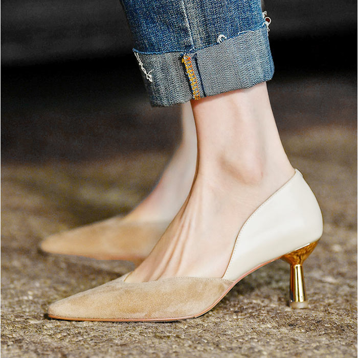 ・足をスラっと魅せてくれる、バランスの良いヒール。地面に着く面が広い作りで、歩行が安定。