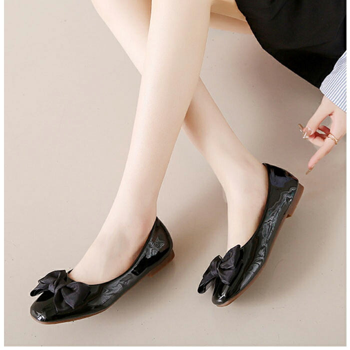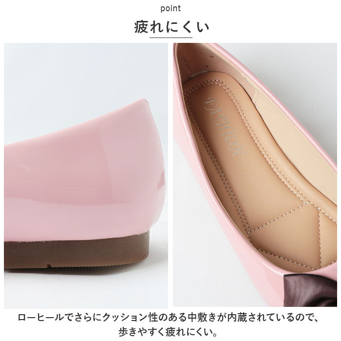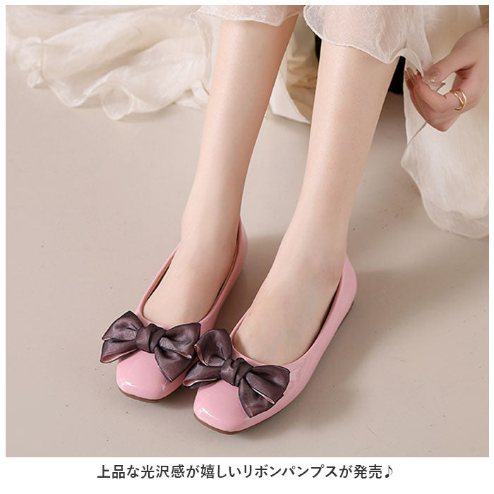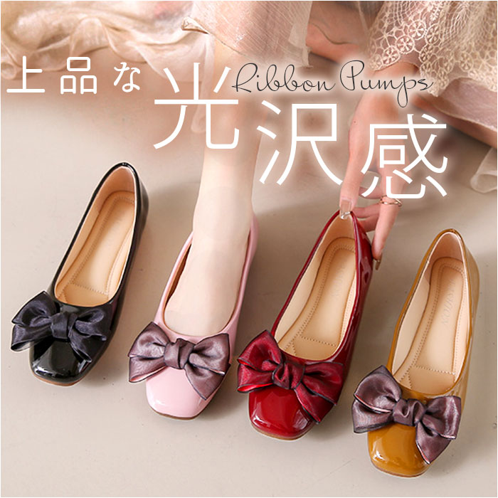パンプス ローヒール リボン 通販 フラットシューズ きれいめ ローヒールパンプス ぺたんこパンプス レディース 靴 シューズ かわいい 歩きやすい おしゃれ 結婚式 パーティ ゴム底