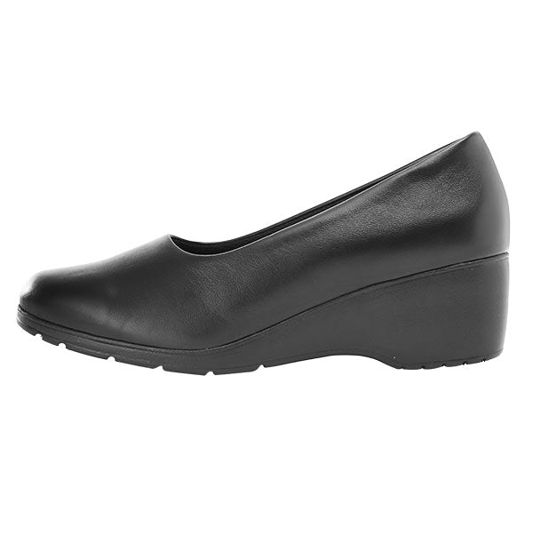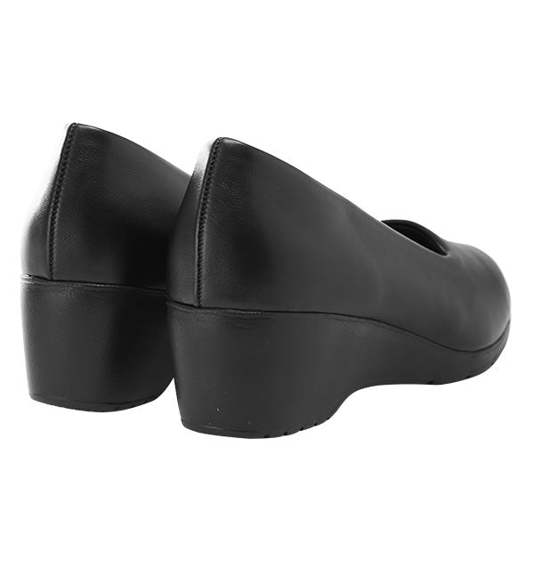 働く女性のために作られた、足元をやさしくサポートする快適設計のオフィスシューズです。丁度良い高さの5cmヒール、やわらかストレッチ合皮が幅広の部分で伸縮するので足の形状にフィット。土踏まずを支え、疲労を和らげる中足骨パッド、かかとのショックを和らげるヒールパッド、足の内側を支えるアーチクッションなど、働く方にやさしい機能性の高いビジネスシューズです。
