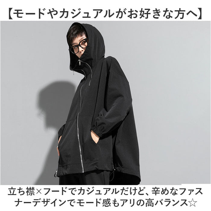 ・立ち襟×フードでカジュアルだけど、辛めなファスナーデザインでモード感もアリの高バランス☆
