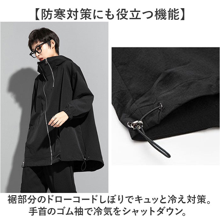・裾部分のドローコードしぼりでキュッと冷え対策。手首のゴム袖で冷気をシャットダウン。