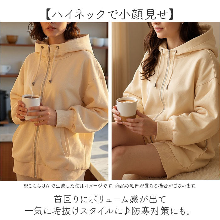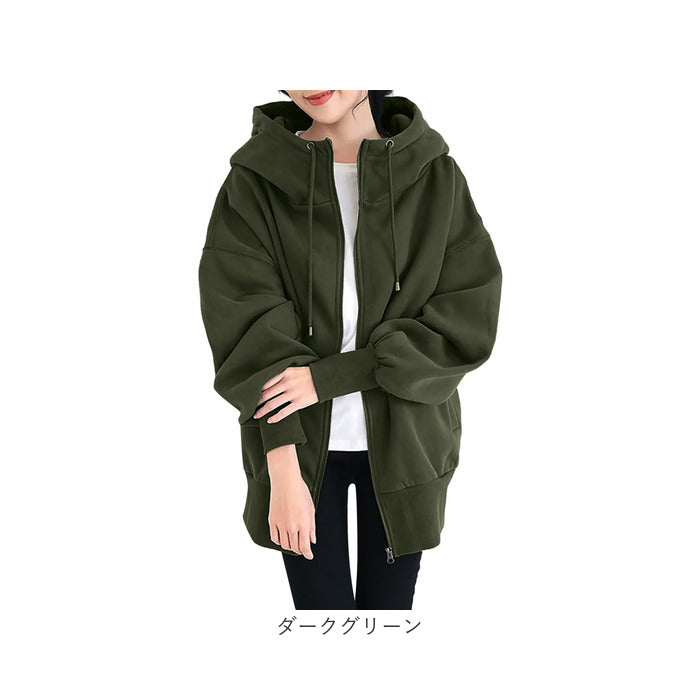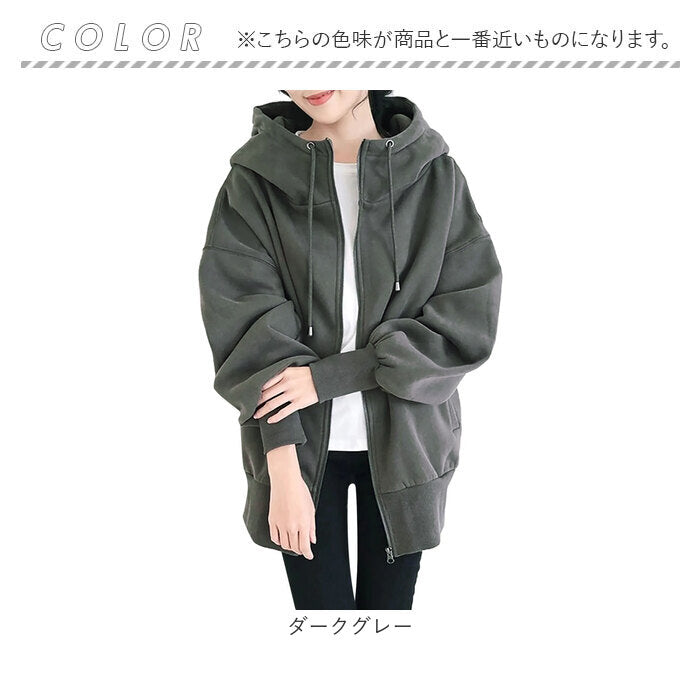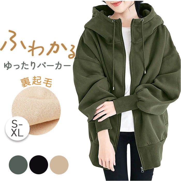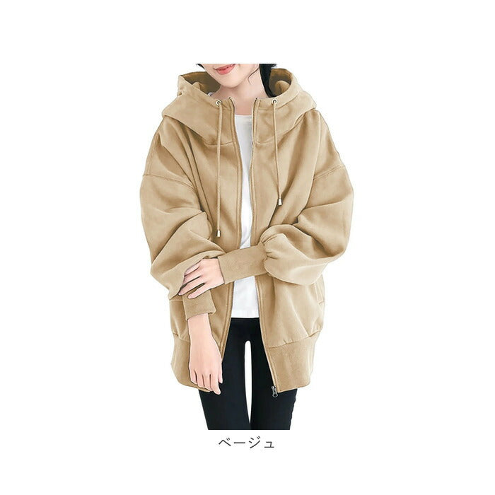 パーカー レディース 冬 通販 ジップアップパーカー ジップパーカー 長袖 厚手 羽織り トップス 無地 ゆったり 秋 アウター 可愛い おしゃれ かわいい 体型カバー ジップアップ