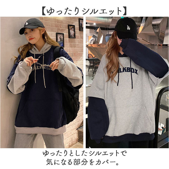 パーカー レディース 通販 おしゃれ 大きめ ビッグシルエット ゆったり トップス 体型カバー かわいい オーバーサイズ 厚手 プルオーバー フード付き 大人 学生 春秋冬 ワンポイント