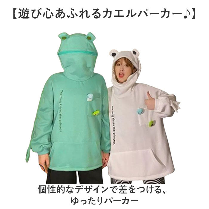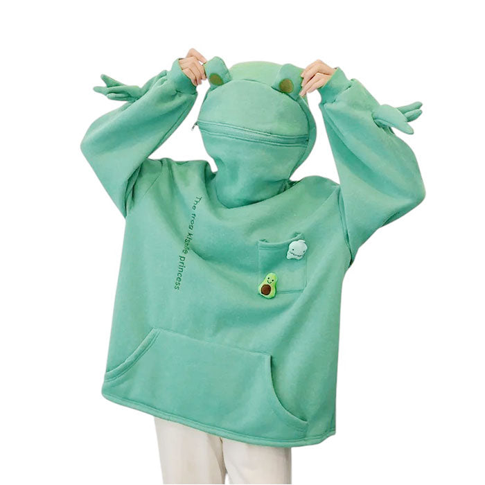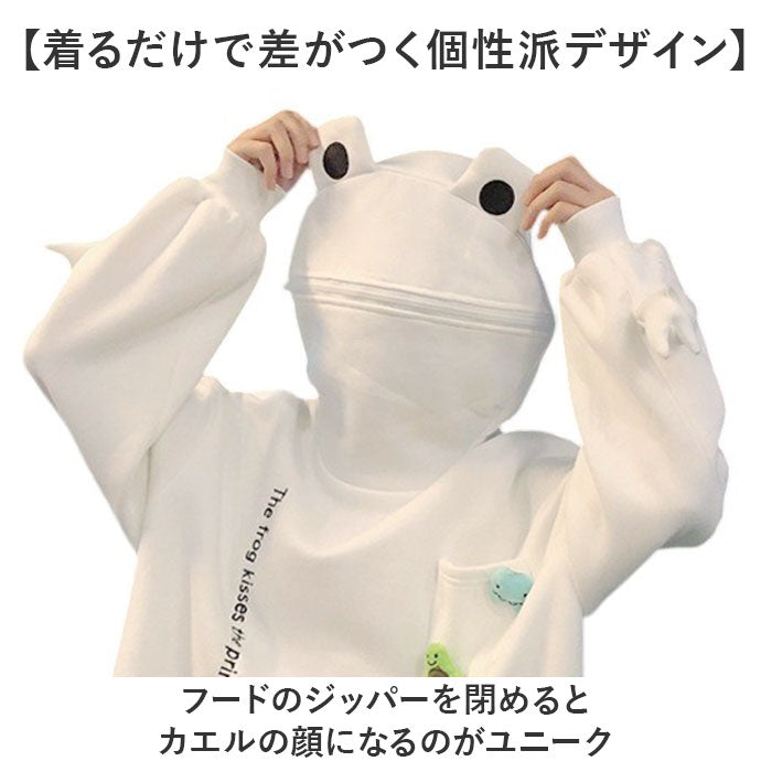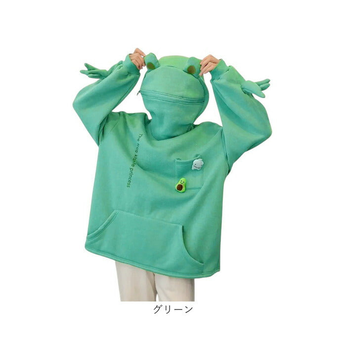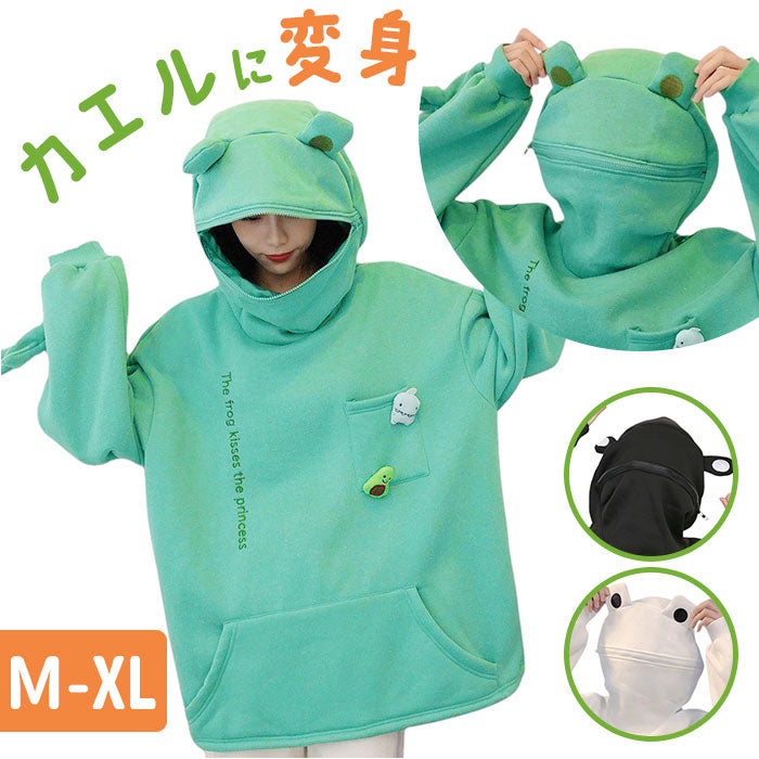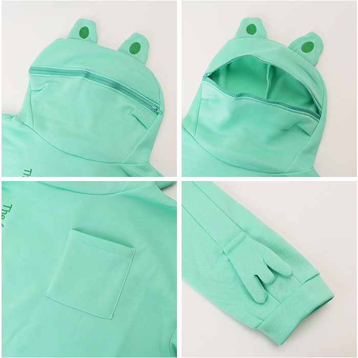 ・フードのジッパーを閉めるとカエルの顔になるユニーク
