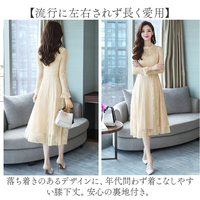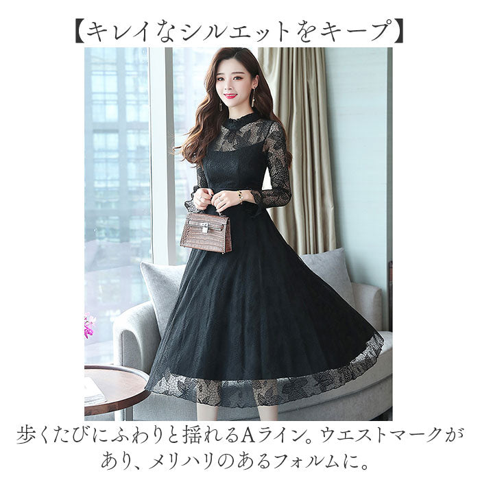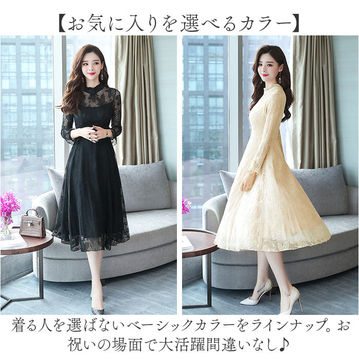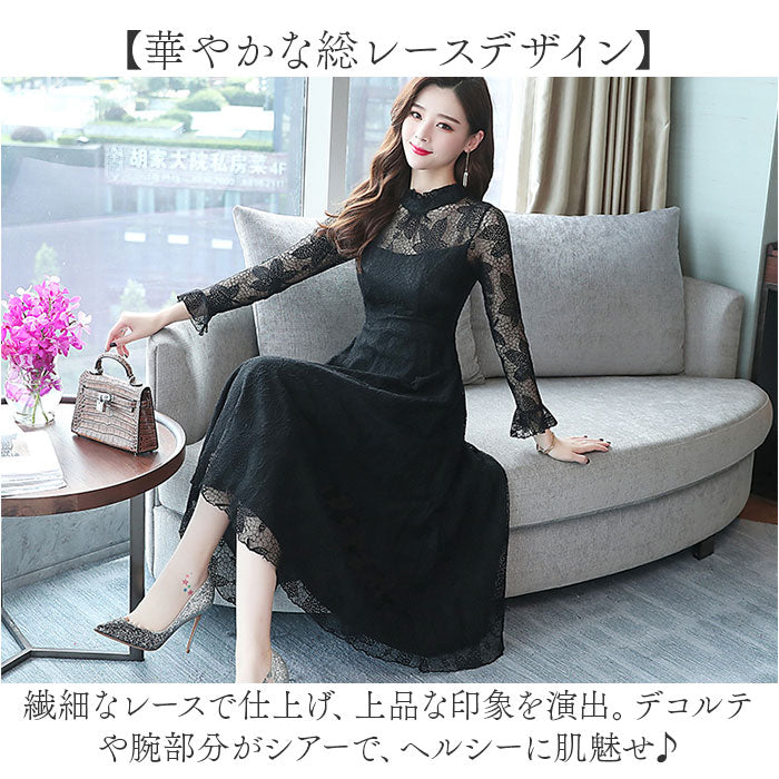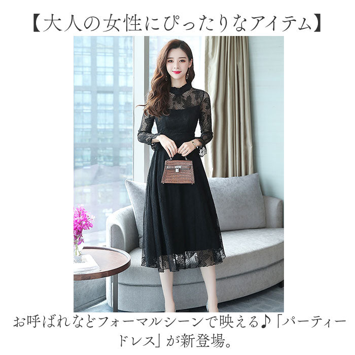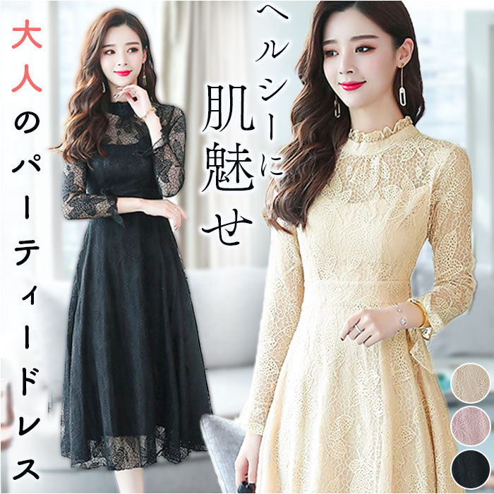 パーティードレス レディース ドレス 通販 ワンピース ワンピ フォーマルワンピ フォーマルワンピース 総レース レース フォーマル ひざ下 膝下 膝丈 シースルー 透け パーティー 結婚式