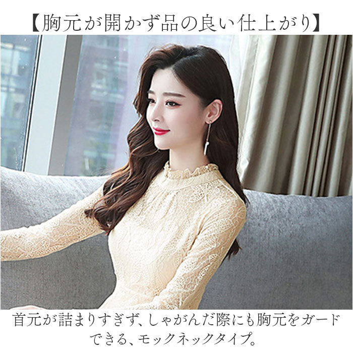 ・首元が詰まりすぎず、しゃがんだ際にも胸元をガードできる、モックネックタイプ。