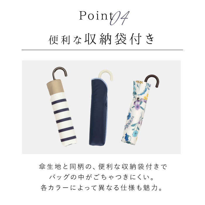 ・持ち運びに便利な、傘生地と同柄の収納袋が付属。