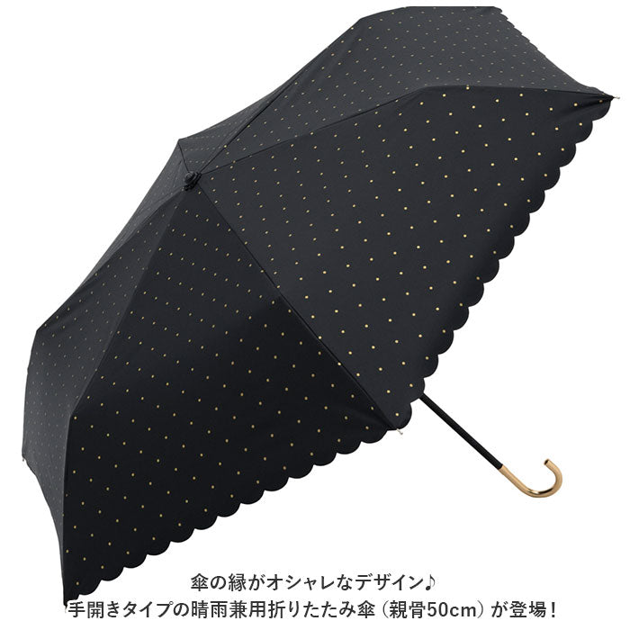 ・傘の縁がオシャレなデザイン♪手開きタイプの晴雨兼用折りたたみ傘(親骨50cm)が登場!