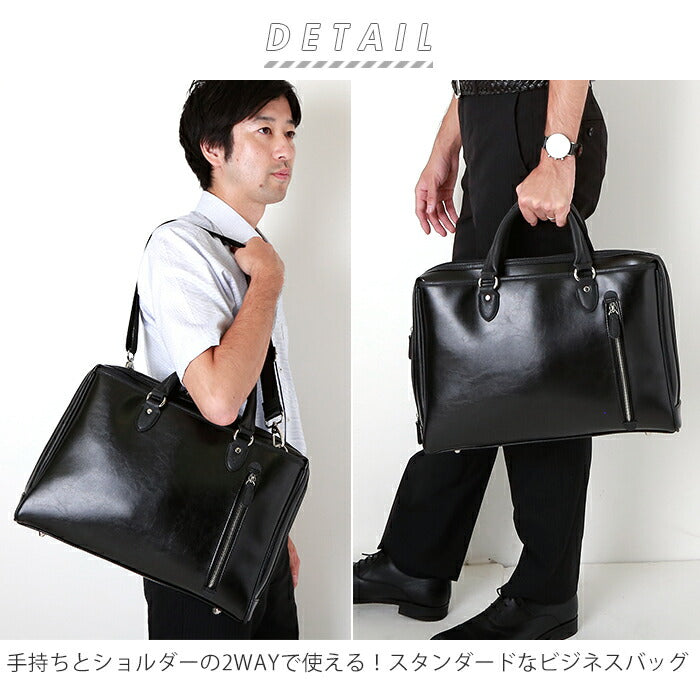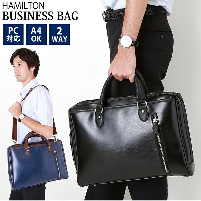 ・光沢感のあるフェイクレザーを全面に使用した、スタンダードなビジネスバッグ・ハミルトン。
