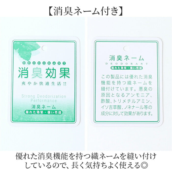 ・優れた消臭機能を持つ織ネームを縫い付けしているので、長く気持ちよく使える◎