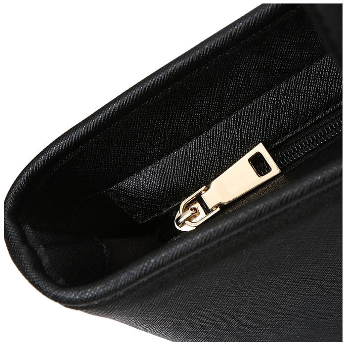 ・メイン収納はA4ファイルが余裕で収まるサイズ感。中央にファスナーポケットの仕切りが付いた2ルーム構造で、書類など分けて収納できるのもポイント。