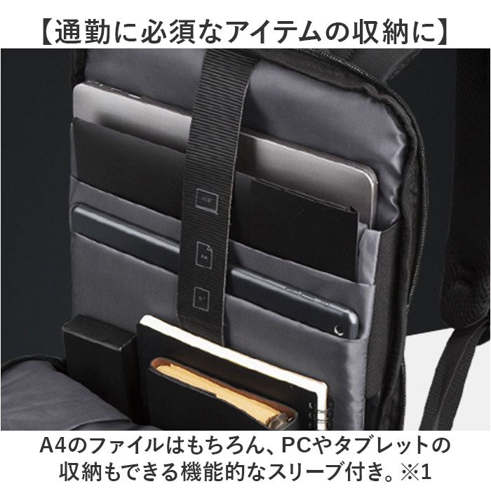 ・A4のファイルはもちろん、PCやタブレットの収納もできる機能的なスリーブ付き。※1