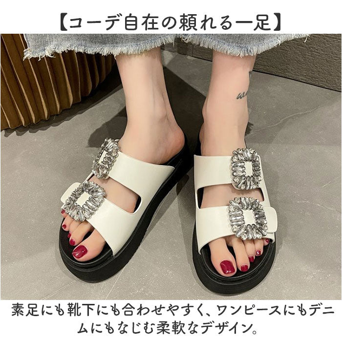 ビジュー サンダル 厚底 レディース 通販 ビジューサンダル 厚底サンダル レディースサンダル コンフォートサンダル 靴? シューズ スリッパ コンフォート 歩きやすい 華やか かわいい