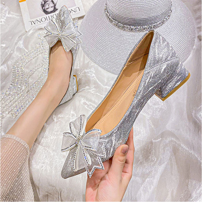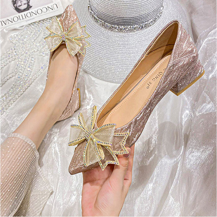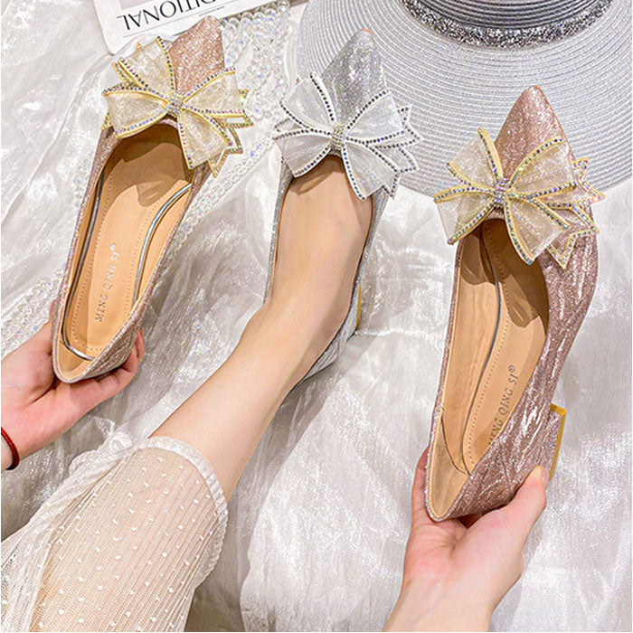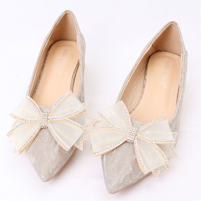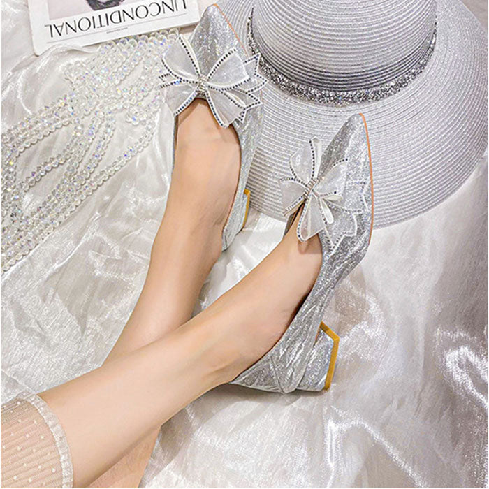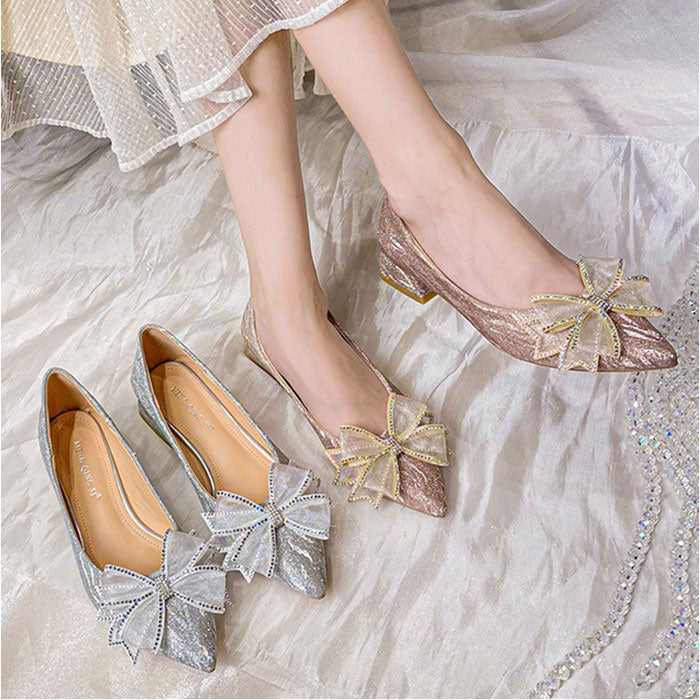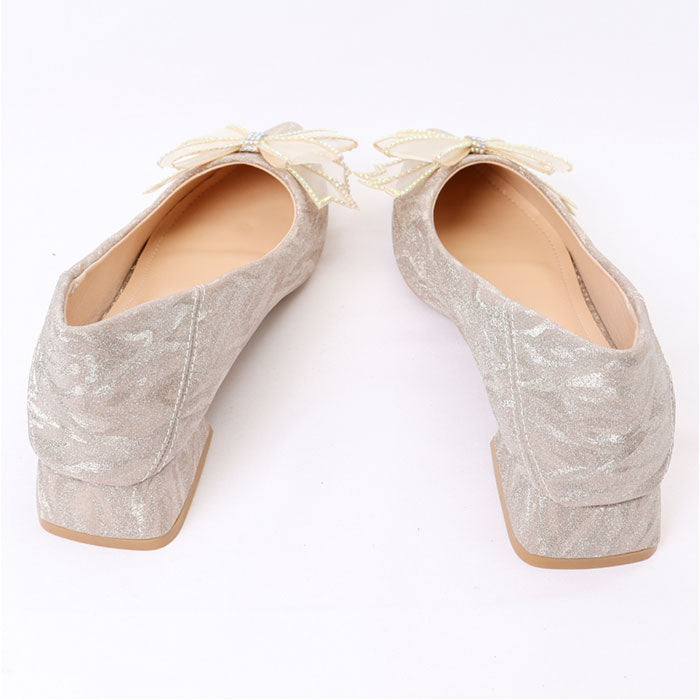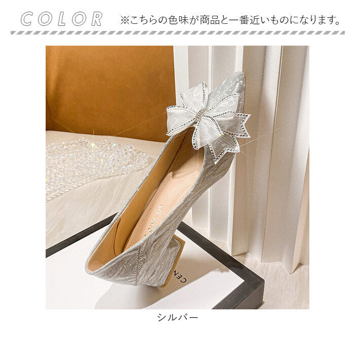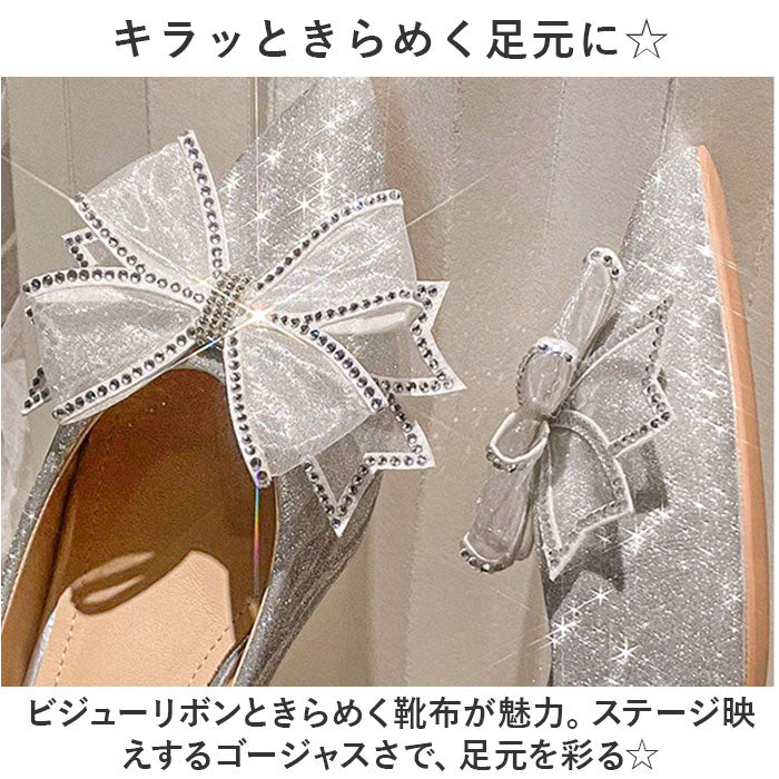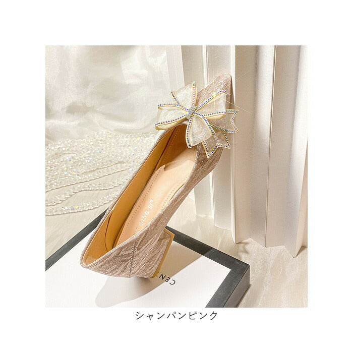 ビジュー パンプス リボン 通販 靴 シューズ ポインテッドパンプス ローヒールパンプス レディース 歩きやすい ヒール3cm ゴム底 かわいい おしゃれ お洒落 レディースシューズ