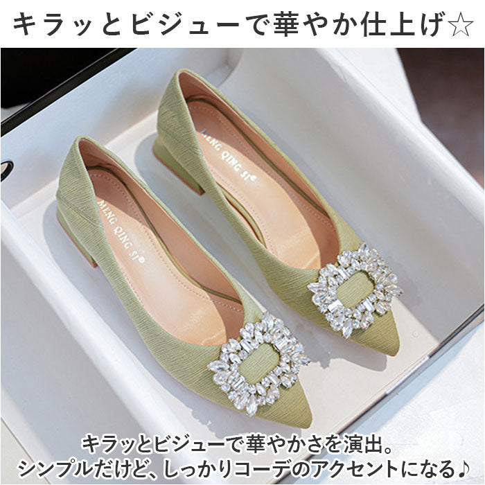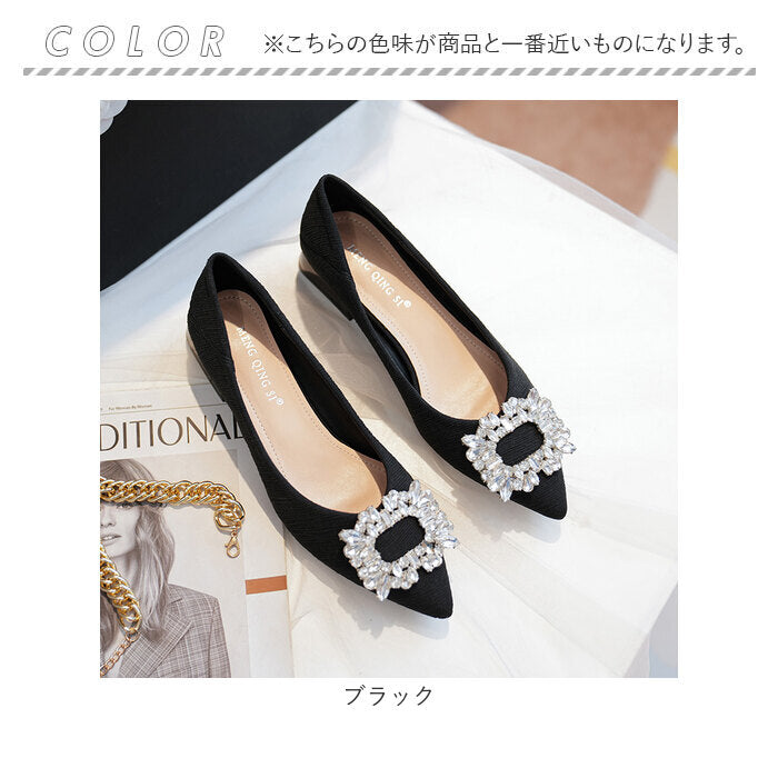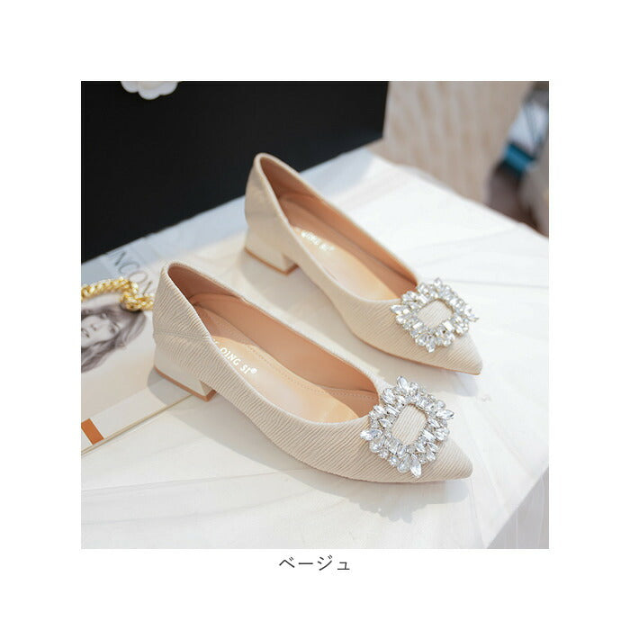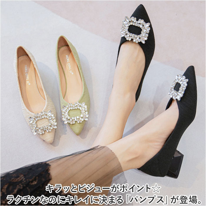 ビジュー パンプス 通販 ローヒールパンプス 靴 シューズ レディース ポインテッドパンプス レディースシューズ キラキラ おしゃれ お洒落 歩きやすい かわいい ヒール3cm ゴム底 通勤