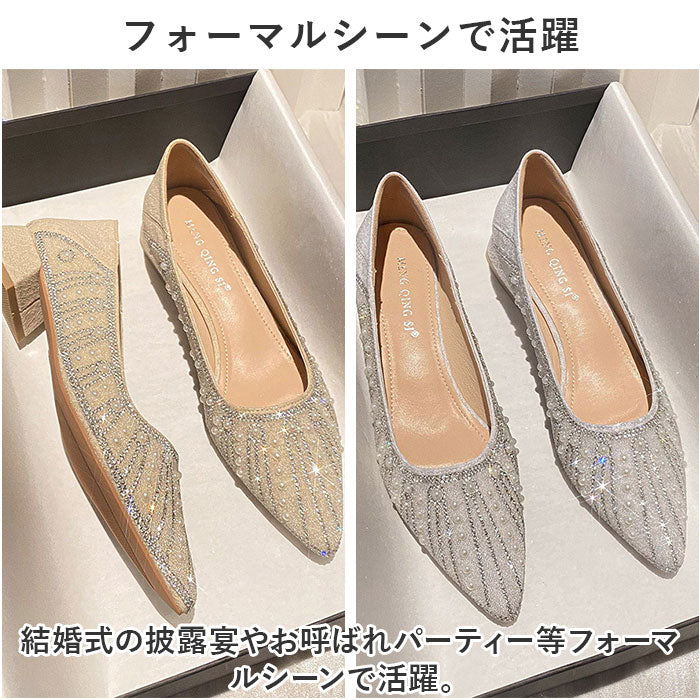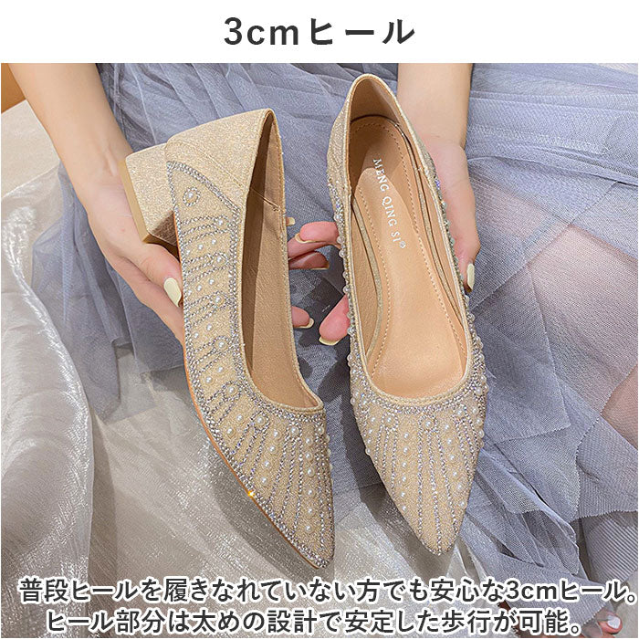 ビジュー パンプス 通販 靴 シューズ レディース ローヒールパンプス ポインテッドパンプス おしゃれ お洒落 ヒール3cm ゴム底 レディースシューズ 歩きやすい かわいい 通勤 オフィス