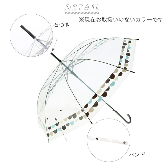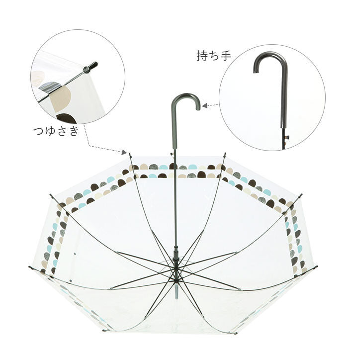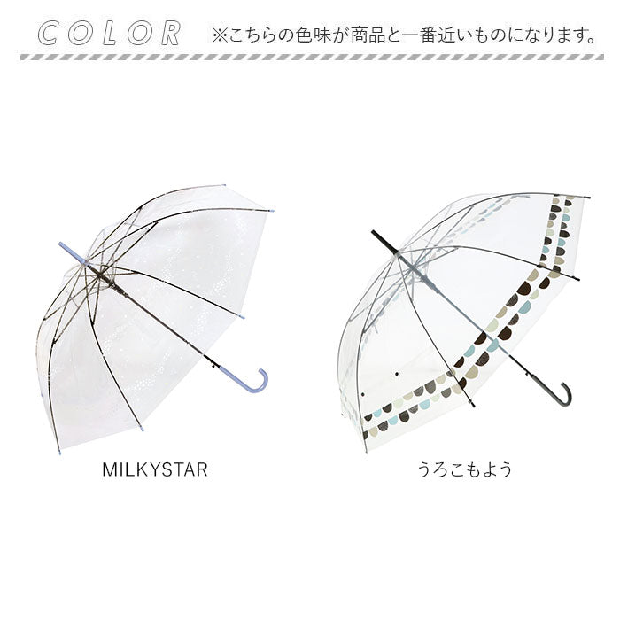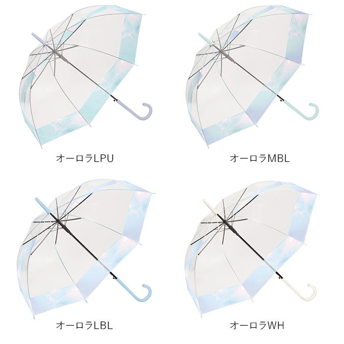 ・傘生地には透明なポリエチレン素材を使用。星柄や光沢のあるオーロラなど、憂鬱な雨の日も楽しい気分になれるデザインをラインナップ。