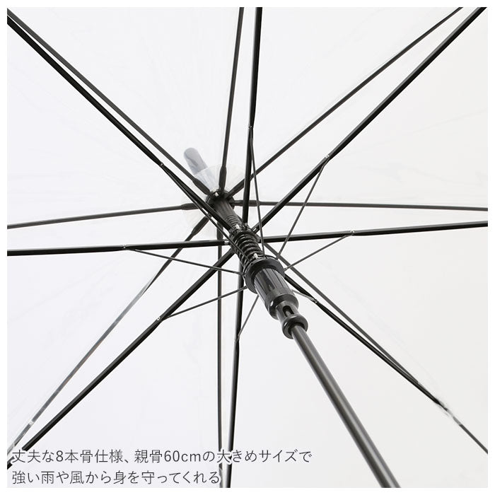 ・丈夫な8本骨仕様で、親骨60cmと大きめサイズ。強い雨や風から身を守ってくれる。