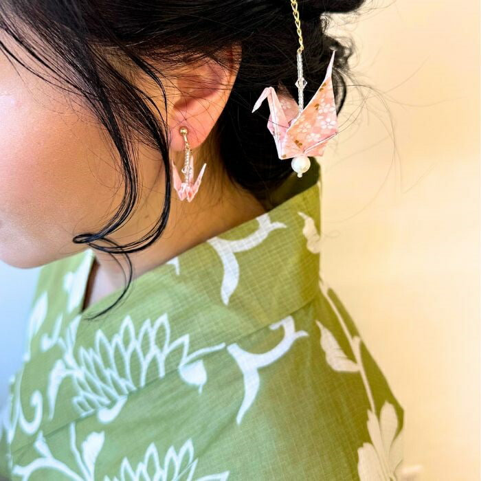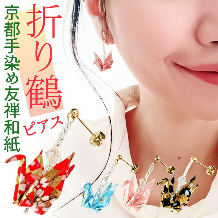 ピアス 鶴 通販 日本製 イヤリング 耳飾り ぶら下がりピアス ぶら下がり タイプ 吊り下げ 両耳 アクセサリー アクセ 折り鶴 折り紙 かわいい 可愛い おしゃれ オシャレ 着物 浴衣 和装