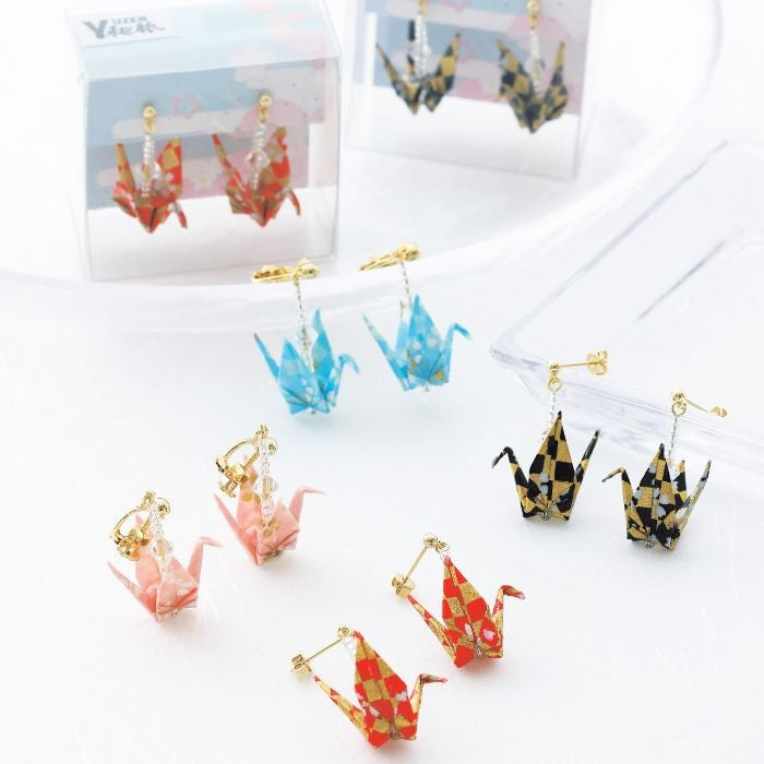 ・京都の手染め友禅和紙、有名クリスタルなど素材にもこだわったワンランク上のおりづるピアス。