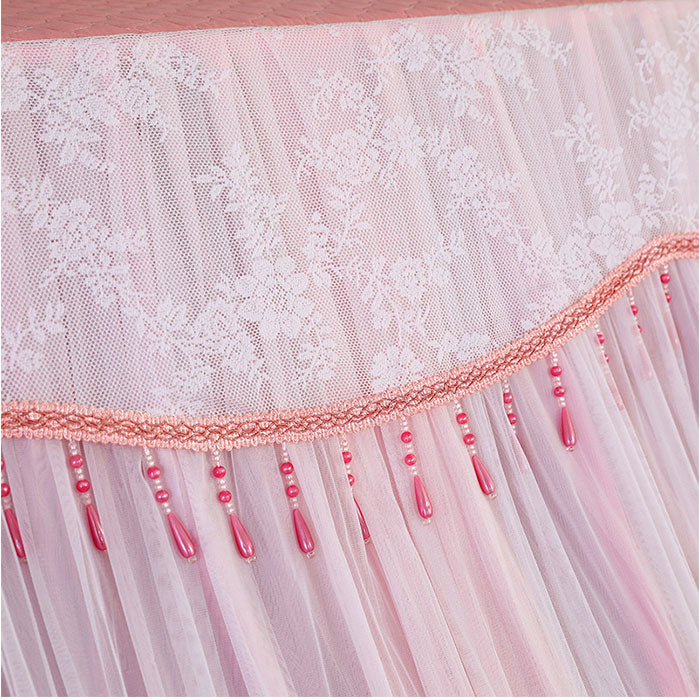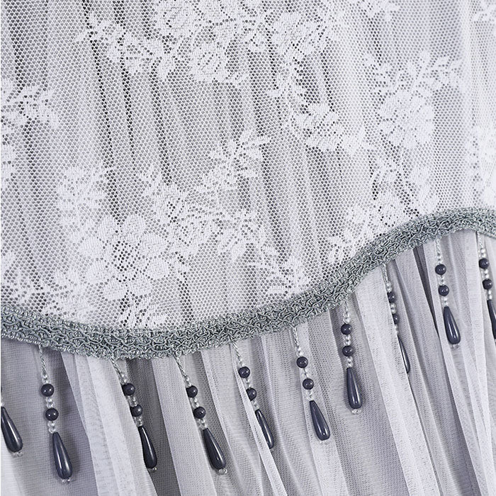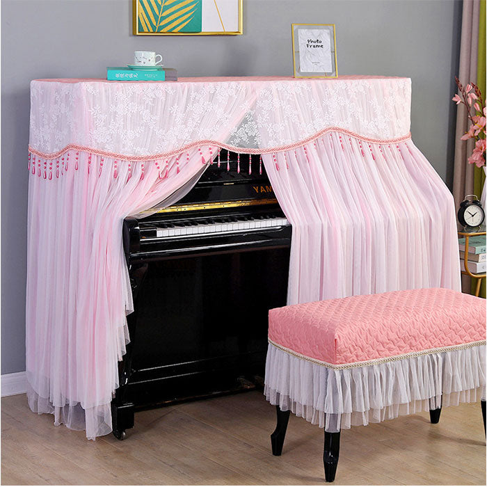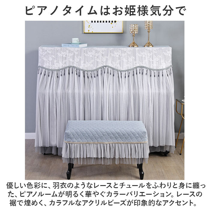 ・優しい色彩に、羽衣のようなレースとチュールをふわりと身に纏った、ピアノルームが明るく華やぐカラーバリエーション。レースの裾で煌めく、カラフルなアクリルビーズが印象的なアクセント。