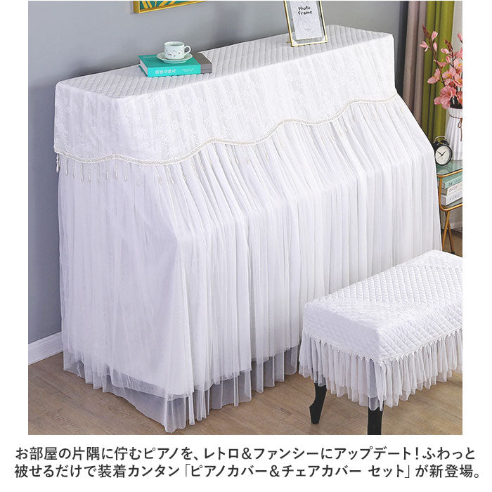 ・お部屋の片隅に佇むピアノを、レトロ&ファンシーにアップデート!ふわっと被せるだけで装着カンタン「ピアノカバー&チェアカバー セット」が新登場。