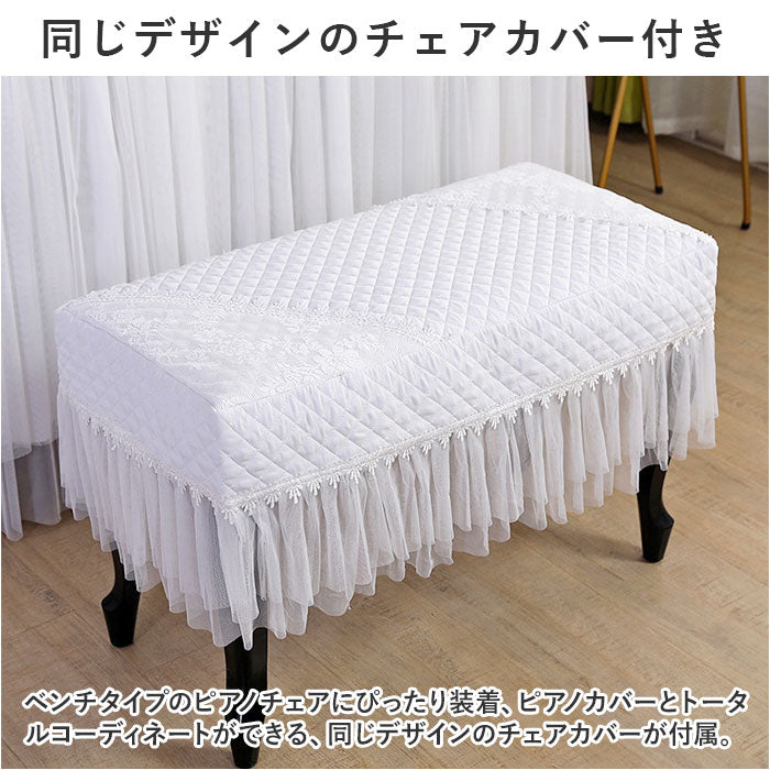 ・ベンチタイプのピアノチェアにぴったり装着、ピアノカバーとトータルコーディネートができる、同じデザインのチェアカバーが付属。