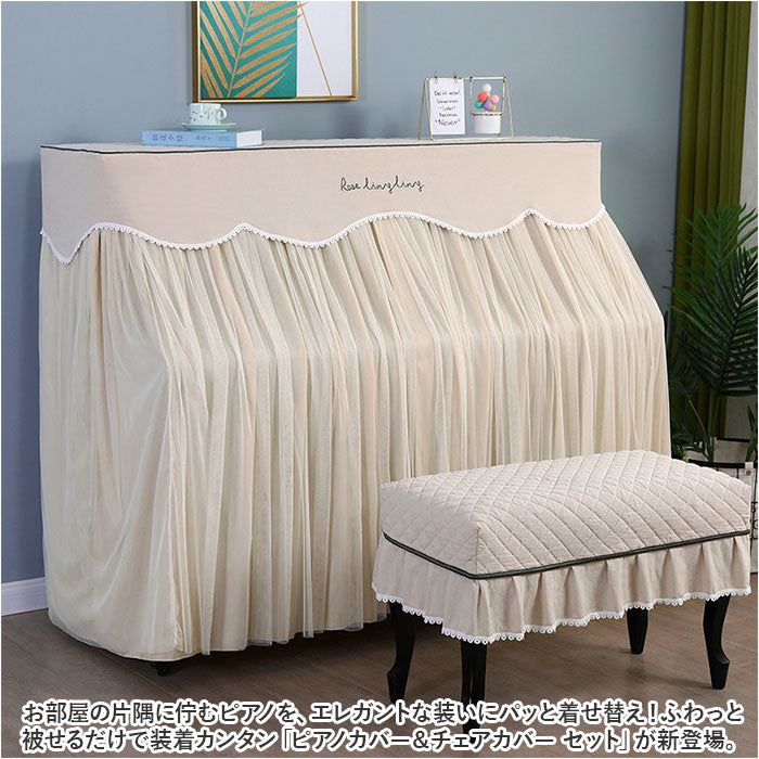 ・お部屋の片隅に佇むピアノを、エレガントな装いにパッと着せ替え!ふわっと被せるだけで装着カンタン「ピアノカバー&チェアカバー セット」が新登場。