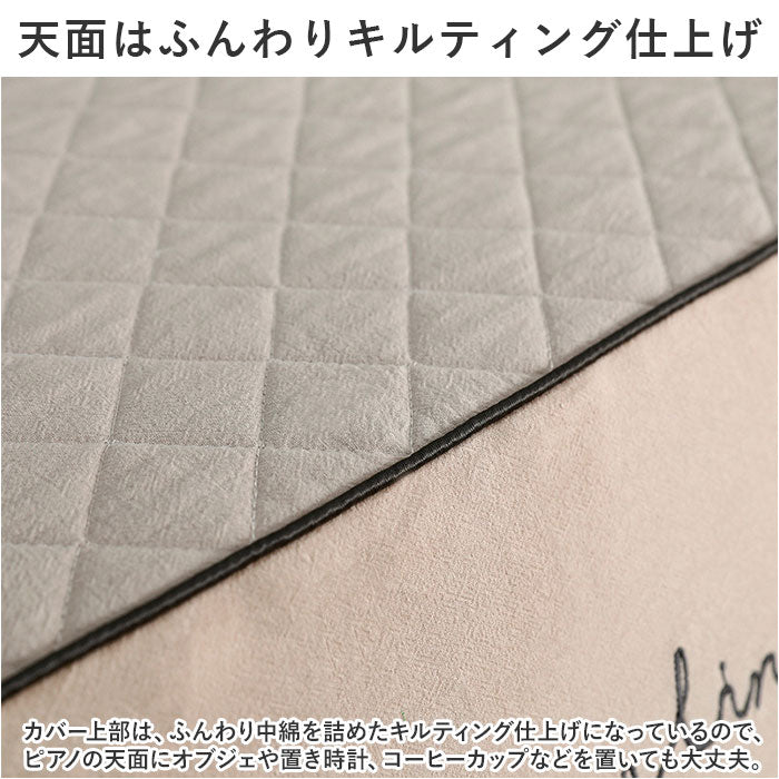 ・カバー上部は、ふんわり中綿を詰めたキルティング仕上げになっているので、ピアノの天面にオブジェや置き時計、コーヒーカップなどを置いても大丈夫。