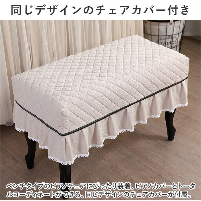 ・ベンチタイプのピアノチェアにぴったり装着、ピアノカバーとトータルコーディネートができる、同じデザインのチェアカバーが付属。
