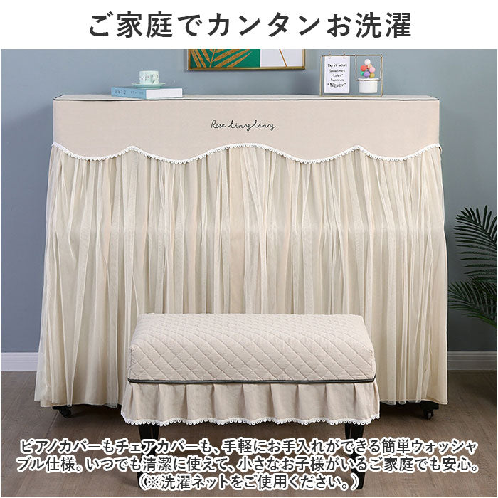 ・ピアノカバーもチェアカバーも、手軽にお手入れができる簡単ウォッシャブル仕様。いつでも清潔に使えて、小さなお子様がいるご家庭でも安心。(※洗濯ネットをご使用ください。)