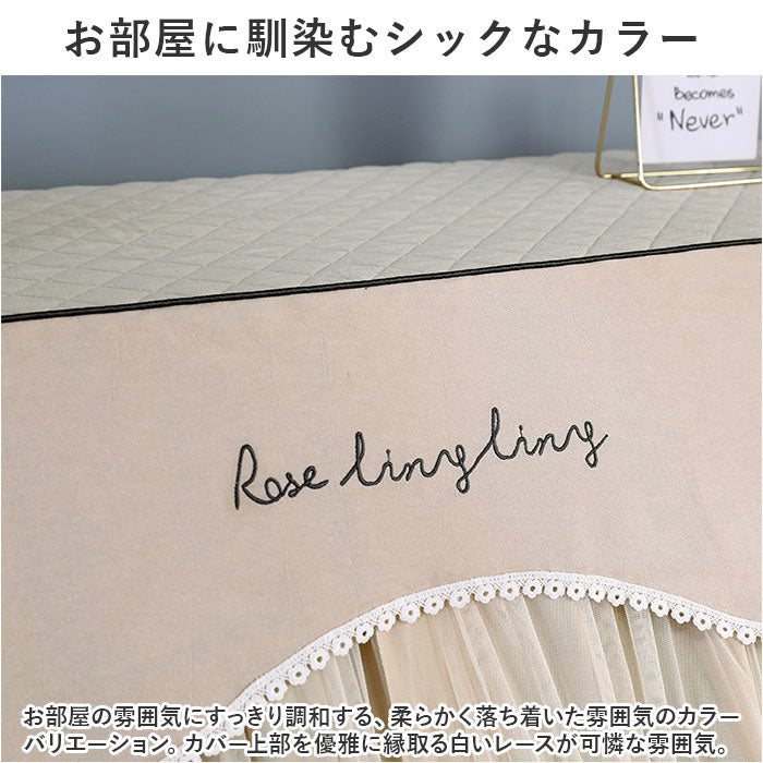 ・お部屋の雰囲気にすっきり調和する、柔らかく落ち着いた雰囲気のカラーバリエーション。カバー上部を優雅に縁取る白いレースが可憐な雰囲気。
