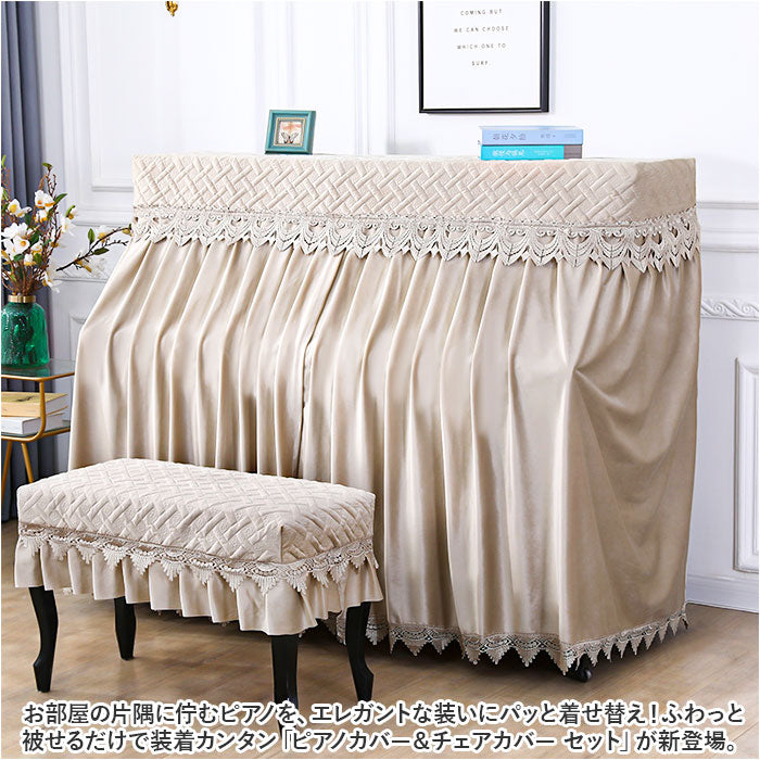 ・お部屋の片隅に佇むピアノを、エレガントな装いにパッと着せ替え!ふわっと被せるだけで装着カンタン「ピアノカバー&チェアカバー セット」が新登場。